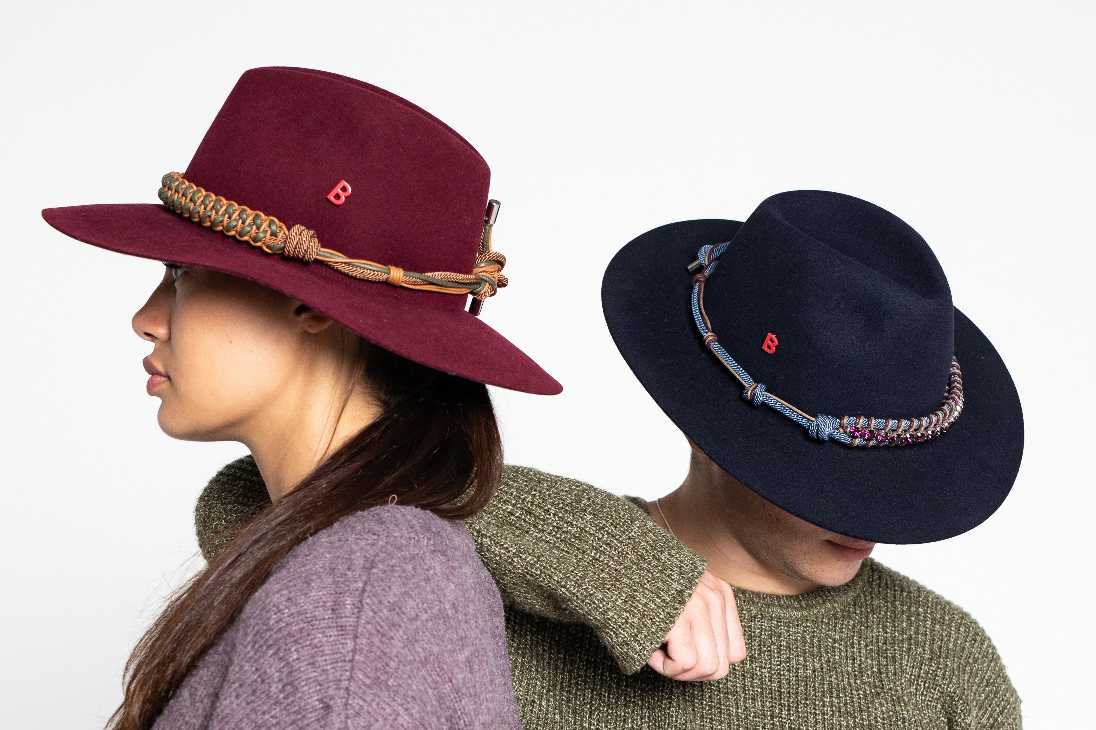 Macramé is the art of knotting materials in patterns to make decorative articles. First developed by sailors in the 13th century, it’s a technique that quickly travelled from the Middle East to Spain and beyond. Recycled ribbons from our headwear are used to make these creations. Handmade, each piece is totally unique.