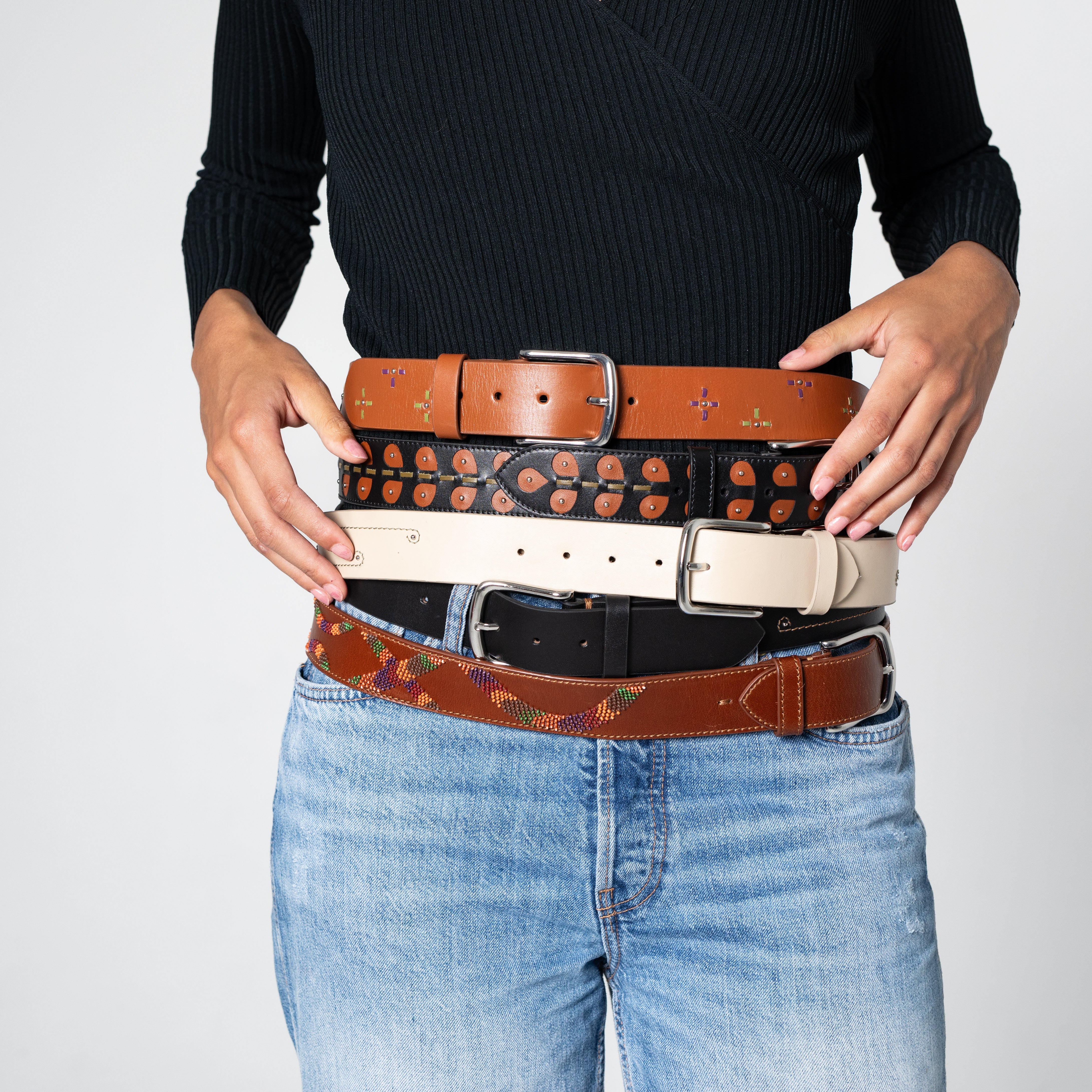 Discover MY BOB embroidered belts, designed to enhance your style. Created by creative director Anne and the head of the workshop, these belts are true works of art. Each model combines vibrant materials with intricate embroidery techniques, with unique patterns and textures that showcase the skills of local artisans. More than just accessories, these belts are a bold statement of your individuality and refinement, offering a unique addition to your wardrobe.