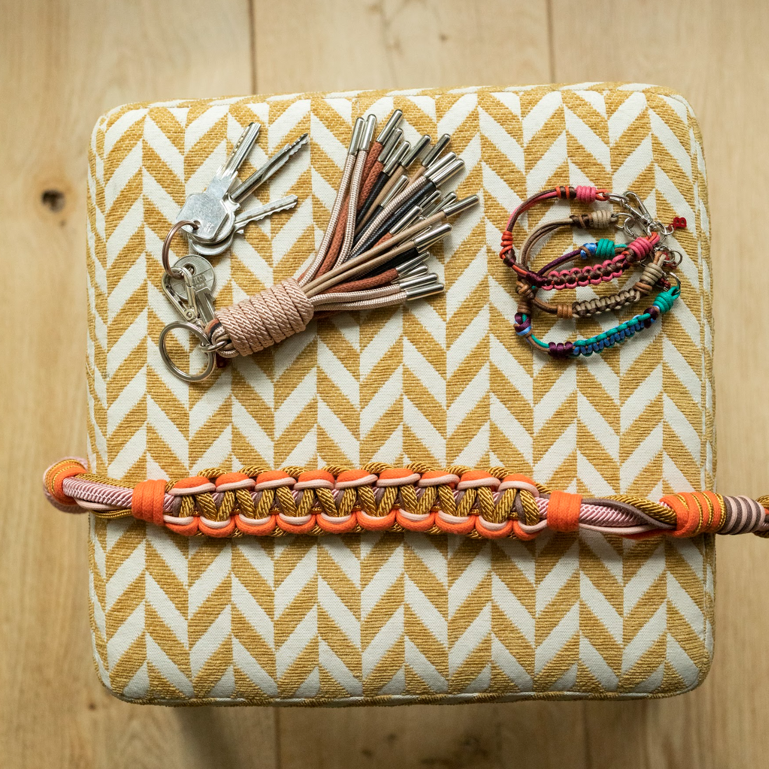 Developed by our creative director, Anne, along with our workshop manager, they are the result of the designer’s drawings and imagination combined with a selection of colourful materials and intricate macramé techniques.