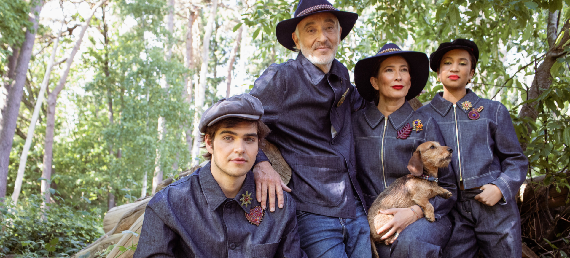 BLANCHE stands out with her mustard yellow velvet skirt and red macramé top, finished with a green ribbon and a small handbag detail.